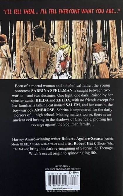Terror is born anew in this dark reimagining of Sabrina the Teenage Witch’s origin. On the eve of her sixteenth birthday, the young sorceress finds herself at a crossroads, having to choose between an unearthly destiny and her mortal boyfriend, Harvey. But a foe from her family’s past has arrived in Greendale, Madame Satan, and she has her own deadly agenda. Archie Comic’s latest horror sensation starts here!