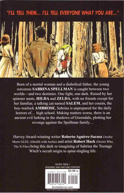 Terror is born anew in this dark reimagining of Sabrina the Teenage Witch’s origin. On the eve of her sixteenth birthday, the young sorceress finds herself at a crossroads, having to choose between an unearthly destiny and her mortal boyfriend, Harvey. But a foe from her family’s past has arrived in Greendale, Madame Satan, and she has her own deadly agenda. Archie Comic’s latest horror sensation starts here!
