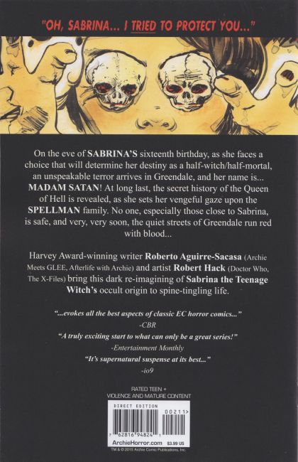 New ongoing series! After the shocking revelations of last issue, Sabrina's mortal boyfriend Harvey doesn't quite seem himself. In fact, he doesn't seem human. His body's there, but his soul is elsewhere. When the Witches' Council refuses to help her, Sabrina turns to Madame Satan for comfort, playing right into her evil schemes. This dark re-imagining of everyone's favorite teen witch continues! For TEEN+ readers.