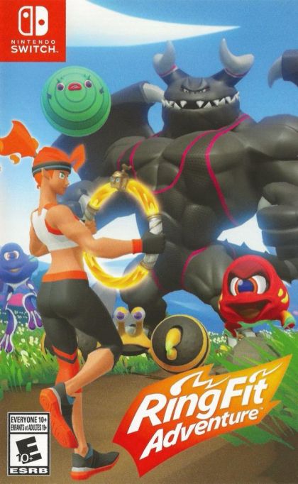 Explore a fantasy adventure world to defeat a bodybuilding dragon and his minions using real-life exercises! Traverse grass-swept plains by jogging in place, attack enemies with overhead shoulder presses, and refill your health meter by striking some yoga poses. Two new accessories, the Ring-Con™ and Leg Strap, measure your real-world actions and help turn them into in-game movements. With additional minigames and customizable workout routines, Ring Fit Adventure is great escape for players of all skill levels and schedules. In Adventure mode, defeat enemies with attacks based on real-world exercises as you traverse more than 100 levels in over 20 worlds. As you work through each level (and possibly work up a sweat), you'll earn experience points. Between fights, you may encounter some unusual methods of transportation such as squat-powered launch pads. Then, pass around the Ring-Con and leg strap accessories and select from a few minigames: break boxes with gusts of air, craft pottery using squats, and more. Features: