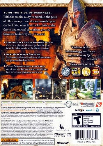 Oblivion is the quintessential role-playing game for the next generation and another leap forward in gaming. Step inside the most richly detailed and vibrant game-world ever created. Oblivion is the latest chapter in the epic and highly successful Elder Scrolls saga and utilizes next-generation video game hardware to fully immerse you into the experience. With a powerful combination of freeform gameplay and unprecedented graphics, you can unravel the main quest at your own pace or explore the vast world and find your own challenges.