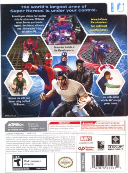 Marvel: Ultimate Alliance is an all-new action/RPG where players create their Marvel dream team from the largest roster of Super Heroes ever in an epic quest that will determine the fate of Earth and the Marvel universe. For decades, Earth's Super Heroes have opposed evil in their own cities, and on their own terms. But now, Dr. Doom and a newly reformed Masters of Evil – the greatest collection of Super Villains ever assembled – have plans for world domination, and the heroes must band together to defeat them. Playing as some of the most revered Marvel characters, gamers will embark on a dangerous journey across exotic terrain and well-known comic book locations like Atlantis, the Shield Heli-Carrier and the Skrull home world in an attempt to defy the world's most notorious Super Villains. Created by Raven Software, Marvel: Ultimate Alliance lets players control the most powerful Super Hero alliance the world has ever known.