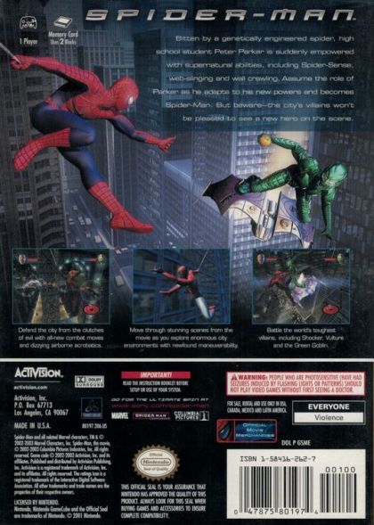 Spider-Man: The Movie Game immerses the players in the high-swingin', web-slingin' world of the feature film starring Tobey Maguire and Willem Dafoe (due for release in June 2002). The player assumes the role of the super hero himself, weighing great power with great responsibility as he embarks on a career to thwart crime and put an end to a mastermind criminal, the Green Goblin, and his legions of evil. All-new aerial combat, in-air control and free-roaming capabilities add to a franchise that has already enjoyed astonishing success.