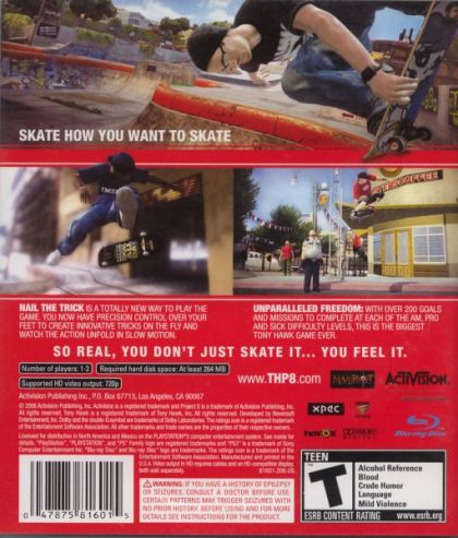 Reengineered from the ground up for Sony and Microsoft's next-generation consoles, Tony Hawk's Project 8 immerses players in the definitive skateboarding experience using ultra-realistic graphics, enhanced physics and extremely responsive controls that simulate the feeling of skating with every trick and bail. The game challenges players to experience the intensity and pressure of skating against some of the world's top pros in true to life competitions as they aim to become the #1 skater and establish their town as a skateboard destination. Delivering continuous skating action in a free-roaming living environment, Tony Hawk's Project 8 incorporates the series' most popular features, all of which have been enhanced with next-generation technology.