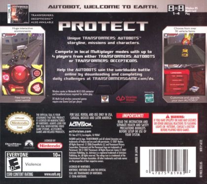 Based on Paramount Pictures upcoming feature film, Transformers: The Game lets gamers choose to play as either Autobots or Decepticons and experience the unstoppable power and massive scale of their favorite robots in disguise as they choose to protect or destroy Earth. Players must master each character's unique weapons, moves and instantaneous transformations that allow them to effortlessly switch between vehicle and robot mode, as they rampage fully destructible environments smashing everything they encounter and using all objects as weapons along with firepower to obliterate enemies.