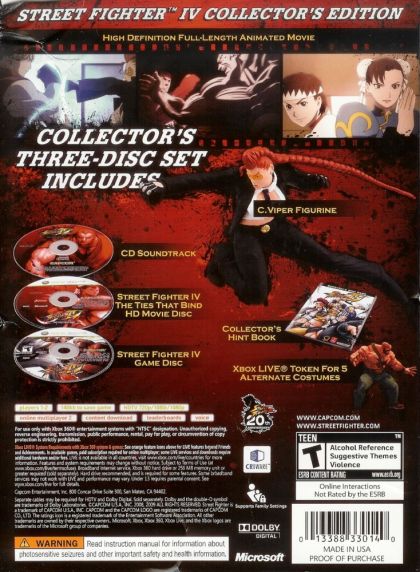 Street Fighter IV features a mix of returning favorites such as Ryu, Ken, Chun-Li and Guile along with new characters created for this game, such as Crimson Viper, Abel, El Fuerte, and Rufus. Characters and environments are rendered in stylized 3D, while the game is played in the classic Street Fighter 2D perspective with additional 3D camera flourishes. Six-button controls for the game return, with a host of new special moves and features integrated into the input system. Mixing classic genre-defining game mechanics the franchise is known and loved for with all-new, never-before-seen gameplay systems, Street Fighter IV brings a brand new fighting game to fans the world over. With the inclusion of Capcom's latest advancements in new generation technology, Street Fighter IV promises to deliver an extraordinary experience that will re-introduce the world to the time-honored art of virtual martial arts.