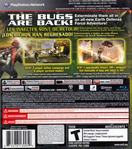 The bugs are back in Earth Defense Force: Insect Armageddon, the most concentrated insect invasion the world has yet to encounter. Mankind faces the end of human civilization at the hands (or claws) of thousands of gigantic bugs unless the elite Earth Defense Force can stop them! Earth Defense Force: Insect Armageddon is a completely new video game developed by Vicious Cycle that expands the Earth Defense Force 2017 universe (Japanese Title "Earth Defense Force 3" developed by SANDLOT) and continues to follow the rich history of fun and addictive gameplay that makes the franchise a cult classic.
