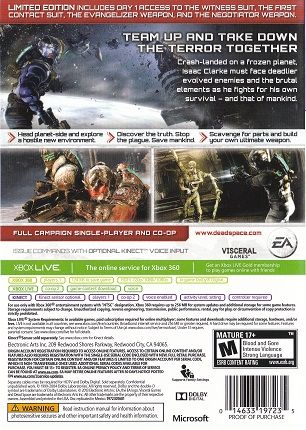 Dead Space 3 brings Isaac Clarke and merciless soldier John Carver on a journey across space to discover the source of the Necromorph outbreak. Crash-landed on the frozen planet of Tau Volantis, Isaac must comb the harsh environment for raw materials and scavenged parts. He will then put his engineering skills to the ultimate test to create and customise weapons and survival tools. The ice planet holds the key to ending the Necromorph plague forever, but first Isaac must overcome avalanches, treacherous ice-climbs, and the violent wilderness. Facing deadlier evolved enemies and the brutal elements, Isaac can choose to team up, not only for his own survival, but for that of mankind's. Play together with a friend or go it alone as Isaac Clarke using the seamless new drop in, drop out co-op functionality. Each mode offers unique story elements and gameplay.