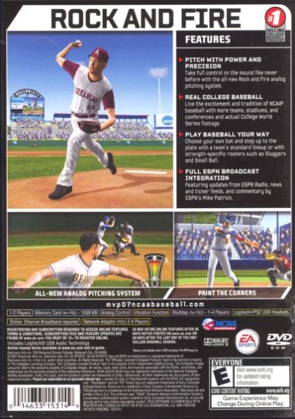 Welcome back baseball fans, to the second year of the only college baseball game to market. EA SPORTS, brand of the best gameplay engine around, and continuing to innovate the way Baseball is played in a video game, is proud to announce MVP 07 NCAA Baseball for the Sony PlayStation®2 computer entertainment system.