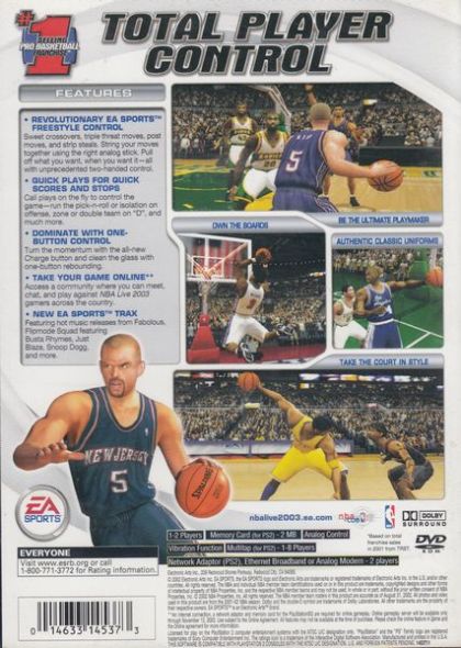 NBA LIVE 2003 allows players to get into the action and live their dreams of NBA superstardom. Totally enhanced gameplay brings the physical, fast-paced action of the NBA to life, while all-new animations and audio deliver the awesome drama and emotion of the NBA experience. In NBA LIVE 2003 players feel the action like never before and make their hoop dreams come true.