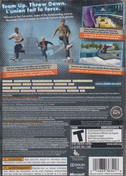 SKATE 3 delivers all the camaraderie and competition of skateboarding. New tricks, improved off board actions, and gnarly Hall of Meat carnage mixed with exciting new team-based gameplay takes SKATE 3 to a new level of skateboarding fun.
