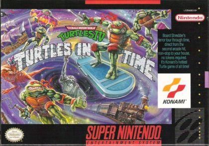 Sunday evening. You're sitting around the sewer watching your main reported, April O'Neil do a live remote from the Statue of Liberty. Then it happens. A humungoso flying android screams out of the sky and rips Lady Liberty from her foundation, sending hundreds of freaked out tourists into the harbor below. "No way!" cries Raphael. "Way," replies Donatello. And the crazy quantum chase is on! Journey through ten levels of enormous arcade graphics, the largest and craziest talking Turtles ever with eons of bodacious battlegrounds, from prehistoric to futuristic galaxies. To prepare for the toughest Shred-heads you've ever seen, try the Versus mode, a Turtle-on-Turtle combat arena that finally proves who's the mightiest mutant of all. Also test your slice-em-up speed in the Time Trials mode to find out how fast you can clear three courses. Get ready for the 3-D jab and toss that sends enemies flying right in your face. Mondo body slams and pizza power bonuses make you more Turtle than ever before. You better believe you're going to need it. Shredder's out for Turtle hide. And he's got all the time in the world to get it.