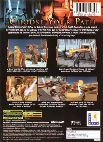 Engage in this saga set in the Golden Age of the Republic - over 4,000 years before the first Star Wars film, when both Jedi and Sith number in the thousands. With the Galaxy reeling from a recent conflict with the Dark Lords, the ongoing battle between the Jedi and the Sith rages on. Your actions determine the outcome of this colossal galactic war - and your destiny as a Jedi.