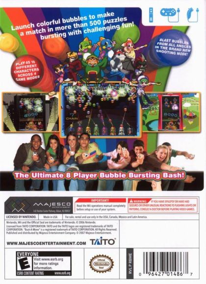 Bust-A-Move Bash! features 10 different characters, including franchise favorites Bub and Bob as well as many new additions. Players will experience a variety of game modes including: