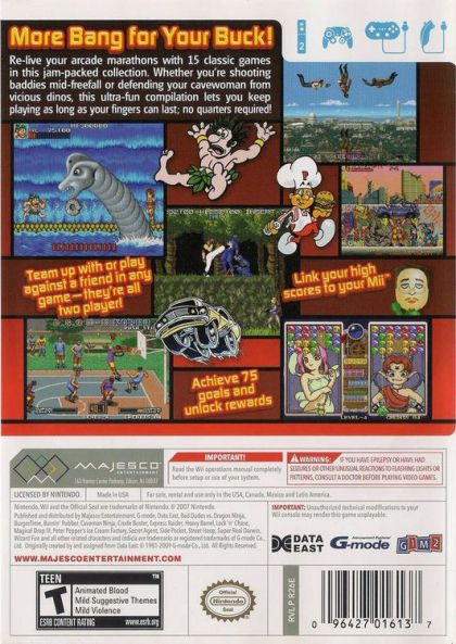 This classic collection from Data East lets you relive some of the greatest arcade games of all-time. From shooters to sports, puzzle and twitch action games, this compilation of arcade hits offers nostalgic appeal and full multiplayer support at a terrific value.