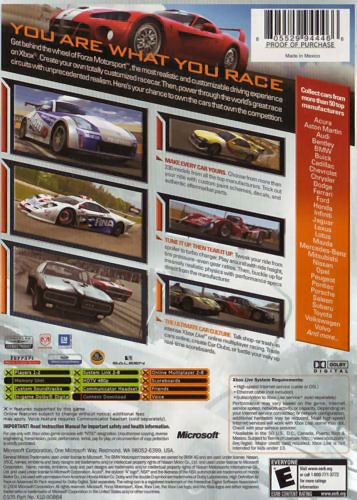 "Forza Motorsport" is the first fully customizable driving simulator for Xbox. With authentic handling and damage physics, lifelike graphics, and realistic tuning options, "Forza Motorsport" brings the automotive experience to life. Feel the pride of owning more than 200 models from automakers such as Nissan, Honda, Ferrari, Porsche, Tommy Kiara and over 40 other manufacturers. Players express themselves with endless visual customization options — choosing from 150 aftermarket brands, a million unique paint schemes, and enough decals for every car imaginable — and then make their vehicles roar on the road with engine upgrades ranging from turbo kits to engine swaps.
