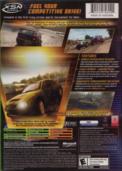 Intense Competition. "RalliSport Challenge 2" is the first racing title in the new XSN Sports brand. XSN Sports games let gamers compete in the first truly virtual sports league for your Xbox. Now gamers can easily set up a rally league on XSNsports.com, take out rivals over Xbox Live, and track up-to-date stats on a PC throughout their own rally season. All XSN Sports games bring the power of the Xbox and PC together for the first time through XSNsports.com, so gamers are always plugged into the competition.