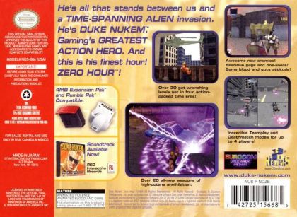 He's all that stands between us and a Time-Spanning Alien invasion. He's Duke Nukem. Gaming's Greatest Action Hero. And this is his finest hour! Zero Hour! Awesome new enemies! Hilarious gags and one-liners! Same blood and guts attitude! Over 30 gut-wrenching levels set in four action-packed time eras! Incredible Teamplay and Deathmatch modes for up to 4 players! Over 20 all-new weapons of high-octane annihilation.