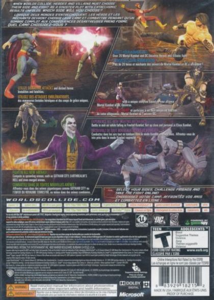 For the first time ever Scorpion, Sub-Zero and the Mortal Kombat warriors battle with Batman, Superman and other popular DC Universe super heroes. Choose your side and challenge your opponents with an all-new fighting system including Freefall Kombat and Klose Kombat along with dynamic multi-tiered environments. Plus, pick your favorite character from Mortal Kombat or DC Universe and pursue a fighting adventure in the new single player mode with an intertwined storyline and two unique perspectives.