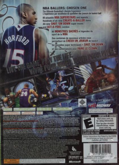 The NBA Ballers Franchise returns to the court with NBA Ballers: Chosen One, featuring over-the-top and fully interactive basketball action that gamers have come to expect from Midway since the introduction of NBA Jam in 1993. More than 65 NBA superstars come to life in Chosen One as the franchise continues its legacy as the industry leader in athlete likeness, putting you up-close and personal as every "Shut 'em Down" super move or "Act a Fool" combo unfolds! Work your way through the competition and get respect from the greatest players in the world as your progress through challenging single-player episodes or online against the masses.
