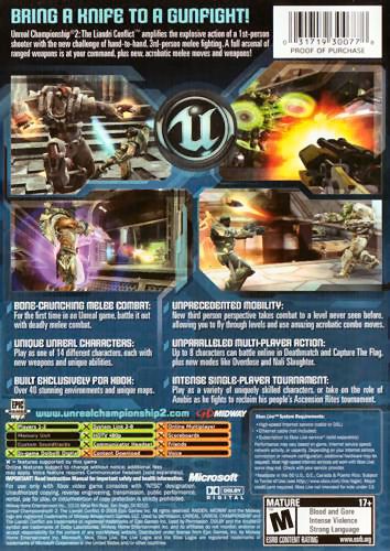 "Unreal Championship 2: The Liandri Conflict" brings the "Unreal Championship" franchise to Xbox and Xbox Live with bold enhancements to single and multiplayer gameplay including all new super-agile player acrobatics, third-person camera mode, vehicles and intense melee abilities. "Unreal Championship" fans can play as any one of 14 characters from the "Unreal" Universe, each with spectacular new Adrenaline powers that enable new offensive and defensive combos.