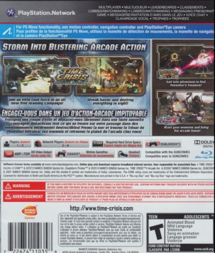 Improving upon the arcade hit, Time Crisis: Razing Storm will feature extensive gameplay modes that combine the series' traditional shooting action with fully destructible environments. Arcade Mode will provide the perfect coin-op adaptation as players experience the adrenaline rush of defeating a chaotic onslaught of enemies. Much like the arcade experience, a friend can drop in and out at any time during the action. In Story Mode, players are able to freely move about the stages as a member of the elite Delta Team. With an arsenal of weapons at their disposal, players can navigate through different areas and silence anyone or anything that stands in their path. They can also strategically take cover behind objects, as well as lock onto enemies with the new Auto Look function. New to the series, a multiplayer Online Battle Mode will allow up to eight players from around the world to participate in cooperative and competitive fun. For a change in pace offline, Sentry Mode offers up to four players the opportunity to stop prisoners from escaping during a penitentiary riot that unfolds in the beginning of the main story.