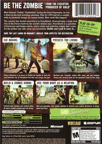 On his quest, Stubbs lurches his way through numerous large and visually captivating indoor/outdoor environments in and around the gleaming city of Punchbowl, PA, a city built during the Eisenhower administration to show off the ultra-futuristic technology of the 21st century. Stubbs' brain-eating adventure brings him through bustling shopping districts and verdant farmlands to battle mad scientists, rural militiamen and the world's deadliest barbershop quartet. His enemies have shotguns, tanks, and all manner of futuristic weaponry. All Stubbs has is his own rotting corpse, a distinct lack of pain or conscience, and the ability to turn foes into zombie allies.