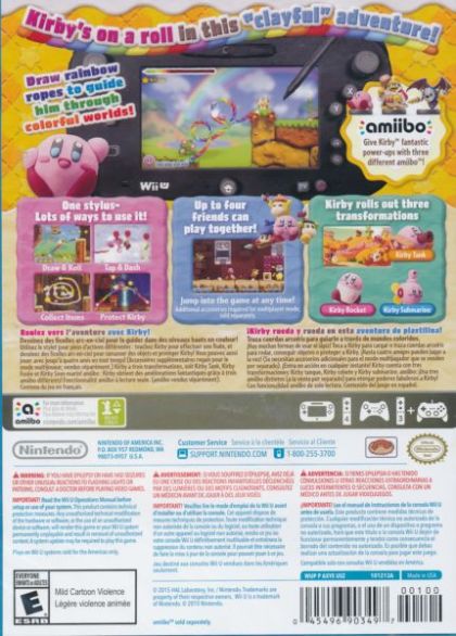 Do you have the magic touch? Then guide Kirby as he sets off on grand adventures in a hand-sculpted clay world. Draw lines on the touch screen of the Wii U GamePad controller to create rainbow-colored clay ropes to move Kirby around freely, or tap him to attack enemies or blast through obstacles. Transformations include a submarine, rocket and tank. In underwater levels, Kirby dons a swim mask. If his power level gets too low, a clay bandage appears on his head.