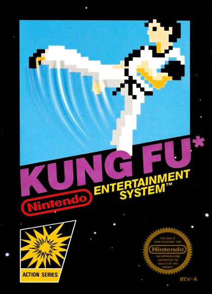 You'll need lightning fast reactions to knock out the Knife Thrower, stop the Stick Fighter, and trip up the evil Tom Tom Brothers in this action-packed martial arts contest! Are you sure you're tough enough? Because it'll take all your strength and skill to master the moves in KUNG FU, beat your opponents, and rescue the fair Sylvia who's held captive on the top floor! The action is non-stop, and just when you think you've got your enemies licked there's always a Giant, a Snake, or a fire-breathing Dragon to contend with in KUNG FU!