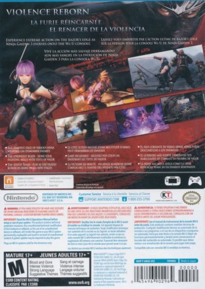 The solitary Ninja, Ryu Hayabusa, must find a way to lift the deadly curse on his right arm before it destroys him... NINJA GAIDEN 3 has been reworked to bring to Wii U the truly intense, high-speed challenge and action NINJA GAIDEN fans demand. With more weapon and Ninpo types, a new character progression system, a redesigned battle system and the return of dismemberment, NINJA GAIDEN 3: Razor's Edge improves upon the original NINJA GAIDEN 3 in every way and offers Wii U exclusive features and functionalities.