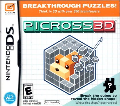 Picross 3D is based on the worldwide popular Picross DS puzzle game. Picross 3D moves the action into three dimensions and blends the logical challenge of a number-based puzzle with the excitement of discovering the hidden images within.