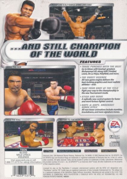 Knockout Kings 2002 features an all new game engine with the fastest, most intense boxing action in the series. Lace on the gloves and experience first-hand the thrills of boxings biggest moments, most devastating combinations, improved mobility, dazzling footwork, crushing blows and the best looking boxers ever.