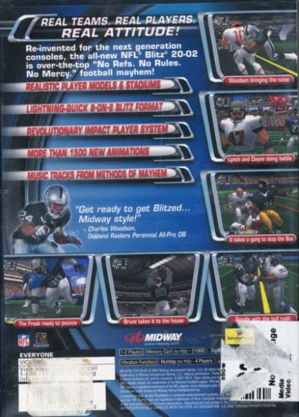 Officially licensed by the NFL and PLAYERS INC, and featuring NFL teams and players, NFL Blitz 20-02 has evolved to bring fast-paced action, visually stunning graphics and NFL strategy to the next-generation of game systems. NFL Blitz 20-02 has been 100 percent re-invented for the next-generation platforms and the next-generation videogamer. It delivers more than just an arcade or simulation football game with its unique mix of fast-action, over-the-top attitude and authentic NFL attributes.