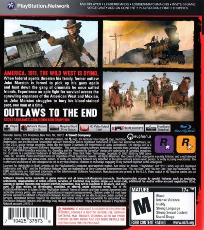 Utilizing Rockstar's proprietary Rockstar Advanced Game Engine (RAGE), Red Dead Redemption features an open-world environment for players to explore, including frontier towns, rolling prairies teaming with wildlife, and perilous mountain passes - each packed with an endless flow of varied distractions. Along the way, players will experience the heat of gunfights and battles, meet a host of unique characters, struggle against the harshness of one of the world's last remaining wildernesses, and ultimately pick their own precarious path through an epic story about the death of the Wild West and the gunslingers that inhabited it.