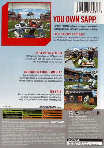 Listen. Do you hear it? Squint your eyes. Do you see it? You don't, do you? You don't because "NFL 2K4" goes beyond mere sound and vision - you feel it. You feel that deep breath you take when you're staring down 80 yards of real estate, a six-point deficit and 1:31 on the clock. You feel the fear in the air that results from unblinkingly staring down a quarterback from your middle linebacker position. You feel that brief moment in time when the ball's in the air and all that fills your mind is the overwhelming need to drive your helmet through that receiver's rib cage. "NFL 2K4" brings the complete NFL experience. Whether it's by making an opponent lose his shorts from a stop-and-go juke, by scraping your toes down as you make an acrobatic first-down catch along the sideline, or by piling on top of a swarming gang tackle on fourth and short -- you'll truly feel everything that makes the National Football League so intense. Don't look. Don't listen. Feel. "NFL 2K4."