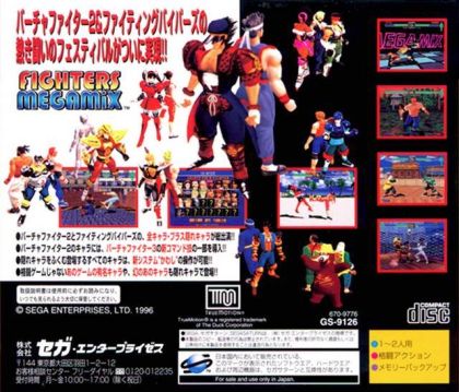 AM2's ultimate 3D fighting experience smashes onto the Saturn, with 32 characters from Virtua Fighter, Fighting Vipers, VF Kids, Sonic Fighters, Virtua Cop 2 and more! Secret characters, new weapons and new moves including many from VF3. The biggest and best beat-'em-up EVER!