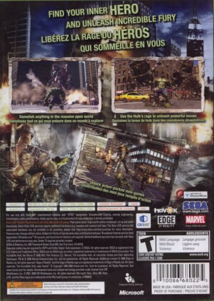 Fuelled with fury, SEGA's The Incredible Hulk features key moments from the film, as well as additional plotlines and characters from the character's rich comic-book universe. Players smash through New York City, battling gigantic enemies amidst soaring skyscrapers in a massive open world.