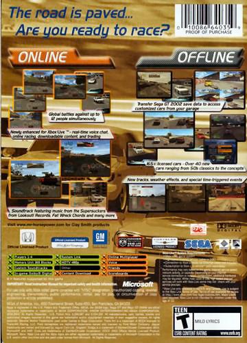 Bringing all the thrills of the most realistic driving game for Xbox online via Xbox Live, "Sega GT Online" allows up to six gamers to put their cars – and their skills – to the ultimate test against thousands of gamers from around the country.