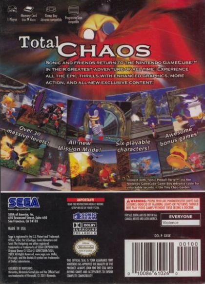 The original "Sonic Adventure" returns with enhanced graphics and more than five hours of new gameplay, including an all-new Mission Mode featuring more than 50 missions and hidden surprises for gamers to discover.