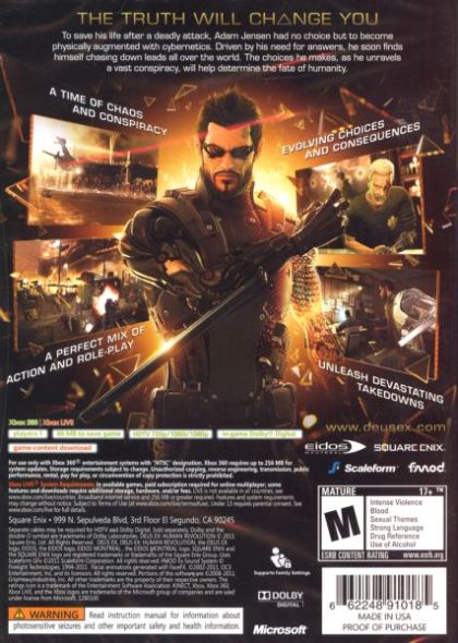 You play Adam Jensen, an ex-SWAT specialist who's been handpicked to oversee the defensive needs of one of America's most experimental biotechnology firms. Your job is to safeguard company secrets, but when a black ops team breaks in and kills the very scientists you were hired to protect, everything you thought you knew about your job changes