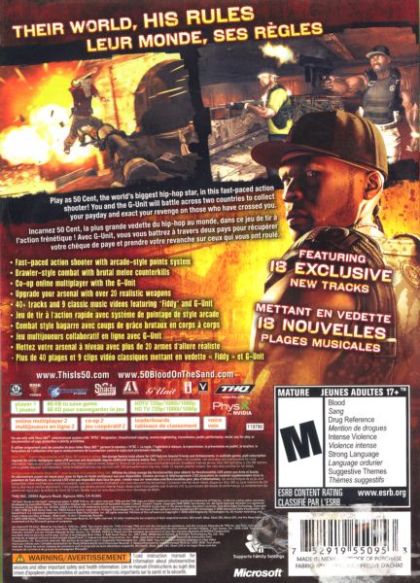 After performing for a sold-out crowd in a fictional war torn middle-eastern country, 50 Cent discovers that his payment has been stolen by the local crime baron – a former CIA operative and death-dealing organ harvester. Play as 50 Cent, the world's biggest hip-hop star, as you and the G-Unit battle across two countries in order to collect your payday and unleash hip-hop justice on those who have crossed you.<br><br> <ul> <li>Fast Action Arcade Shooter Gameplay: Run & Gun shooter gameplay w/ cover system, buddy NPC AI featuring the G-Unit, Vehicle combat missions and Helicopter – rail shooter levels</li> <li> Intense Brawler Style Combat with brutal "Counterkill" finishing moves and the ability to purchase up to 20 Interactive Counterkills</li> <li> Drop-In/Drop-Out Co-Op Online Multiplayer: Take over members of the G-Unit to fight by 50's side - each with their own signature weapon.</li> <li> Arcade Style Points System: Earn money & points via kills and uncovering loot cache's. Use money to purchase new weapons (20 total) and/or Counterkill Finishing Moves.</li> <li> Exclusive Music from 50 Cent and G-Unit: Featuring 18 Never-before-heard exclusive tracks along with classic hits from 50's albums make this the ultimate 50 Cent experience.</li> </ul>