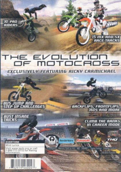 Championship Motocross has always been a symbol of cutting-edge realism in the world of motocross. Now, prepare for new levels of immersion, authenticity and compelling gameplay with the next generation of motocross video games, MX 2002 featuring Ricky Carmichael for PS2. Featuring jaw-dropping graphics, awe-inspiring speed, a perfect blend of traditional racing and free ride madness, plus 28 pro riders including the sports new grand champion, MX 2002 featuring Ricky Carmichael isnt just a game its a complete motocross experience.
