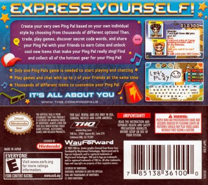 Create your own Ping Pal by choosing from thousands of different items and make your Ping Pal the world's coolest dude or freshest chick. Play games, discover secret code words, and share your Ping Pal with your friends to earn Ping Points that allow you to unlock cool new items. Plus, chat and trade with your friends to find and collect the hottest gear for your Ping Pal.