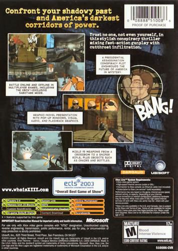 XIII features a conspiracy of epic proportions, and players will unravel clues behind the story's compelling and mysterious events. XIII includes themes of amnesia, in which players must uncover sinister plots against themselves, the U.S. government, and even the president himself. The only clues players have are the roman numerals XIII tattooed on their shoulder and a key to a safe deposit box in a New York bank.