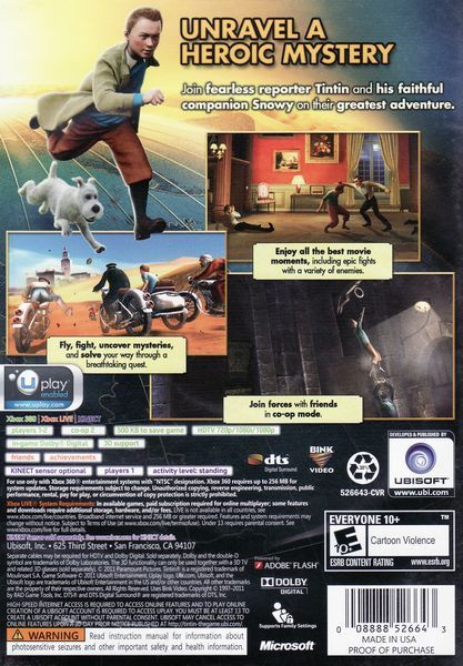 In The Adventures of Tintin: The Game, play as Tintin, the intrepid reporter and hero of the action-packed movie The Adventures of Tintin directed by Steven Spielberg. Developed in close collaboration with the filmmaking team, the video game offers an authentic immersion into the movie's enchanting environments and characters.