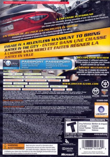 Developed by Ubisoft Reflections under the direction of the creators of the original title, DRIVER San Francisco marks the return of the established video game series that has sold 14 million copies worldwide. Gamers will play as Detective John Tanner on a relentless manhunt for crime lord Charles Jericho through the hills of the City by the Bay. Thanks to a groundbreaking gameplay feature, players can now seamlessly "shift" between well over a hundred licensed vehicles, keeping them constantly in the heart of the action. With its timeless setting, unique car handling and renewed playability, DRIVER San Francisco will revitalize the classic free-roaming, cinematic car chase experience for the current generation of gaming platforms.