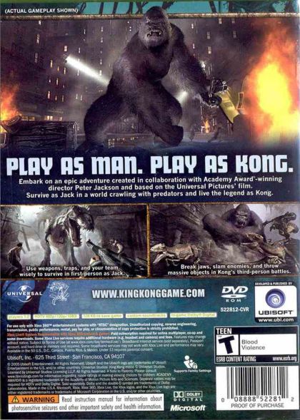 Acclaimed game creator Michel Ancel and the Montpellier studio collaborate with triple Academy Award-winning filmmaker Peter Jackson and visual-effects company Weta Ltd. to develop Peter Jackson's King Kong, a video game that will capture the imagination, vision and emotion of the epic film.