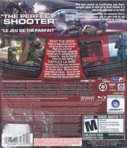 Tom Clancy's Rainbow Six Vegas 2 is the last chance for gamers to rescue America's sexiest city from an escalating terrorist siege that will impose heart-pounding action from beginning to end. The best are back and this time winner takes all. The highly-anticipated sequel to the recipient of numerous awards, including 2006's Best First Person Shooter and Best Online Game, Tom Clancy's Rainbow Six Vegas 2 will push the top-selling franchise to new heights with new gameplay features and groundbreaking co-op and multiplayer modes.
