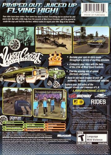 In L.A. Rush, join the crew at West Coast Customs to pimp your ride and live the fabulous lifestyle of an L.A. street racer. Feel the rush as you race over 36 licensed rides including muscle, tuner and exotic vehicles as well as exclusive tricked-out racers designed by West Coast Customs and Rides Magazine. An exciting and unique story-driven experience will allow you to race through 5 fully-open Los Angeles city re-creations while finding treacherous shortcuts and surviving death-defying jumps. L.A. Rush will be the next evolution in the highly addictive Rush franchise!