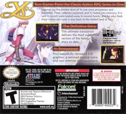 Stories tell of a land of yore, now shrouded by centuries of time forgotten, called Ys. Despite its great knowledge, endless wealth, and bountiful prosperity, a sudden and unexpected cataclysm devastated the realm. Soon, its memory had faded completely from the minds of man.